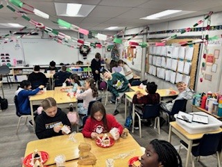 The sweet tradition of gingerbread continues each year in Ms. Hogan’s and Ms. Christie’s classes. Students eagerly build, decorate, and create their own gingerbread designs while learning about teamwork, creativity, and holiday traditions. Laughter, frosting, and imagination fill the room as this beloved activity brings students together, making lasting memories and keeping a favorite classroom tradition alive.